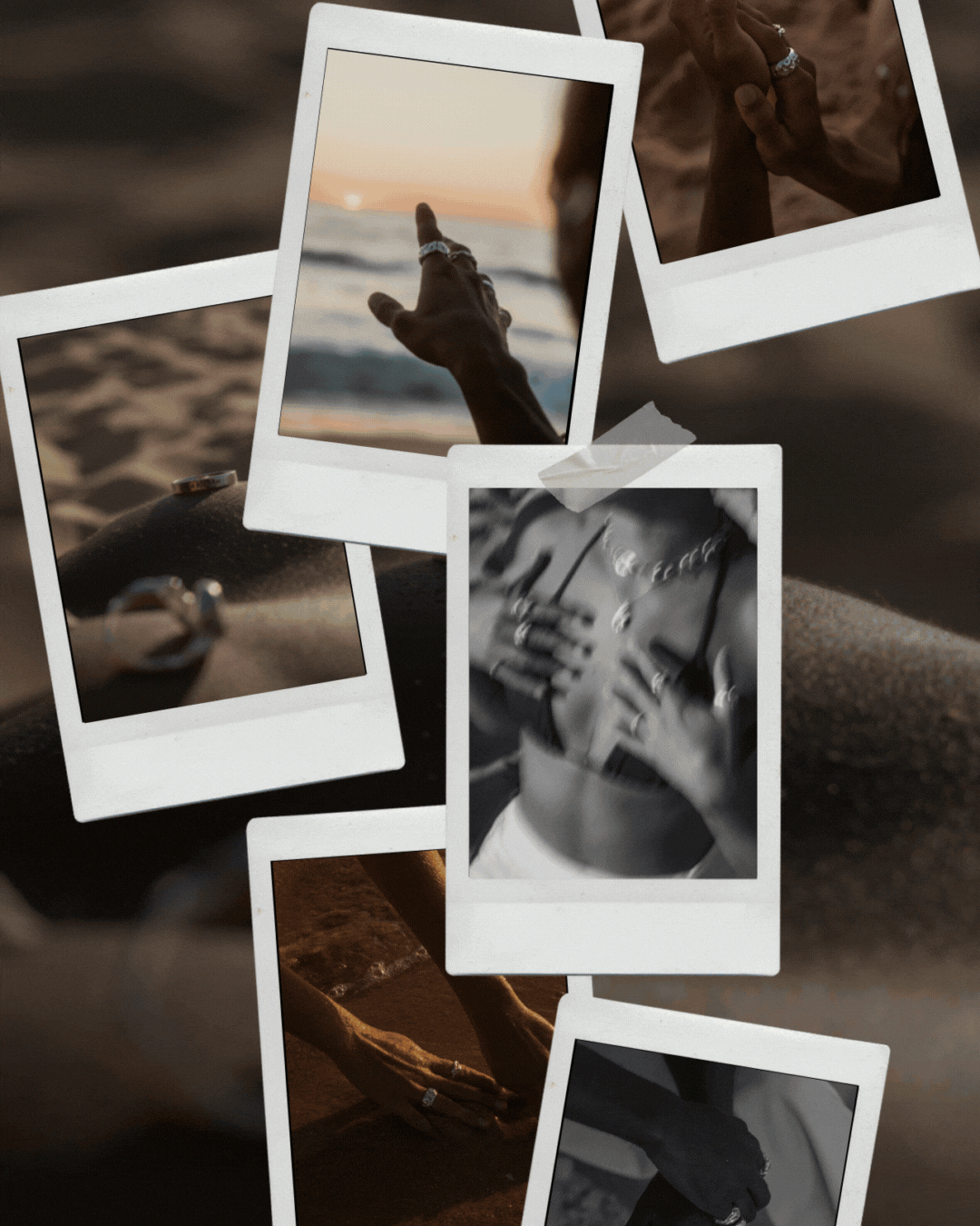 The color palette is earthy and minimal, emphasizing grounded tones and effects like ripped paper and Polaroid frames enhance the overall design. Additionally, I directed two photoshoots, collaborating closely with photographers to visually capture the brand's ethos: highlighting the timelessness and individuality of each piece. Nectar celebrates individuality and the beauty of life's natural rhythms, inviting wearers to embrace handcrafted jewelry that reflects their own journey.